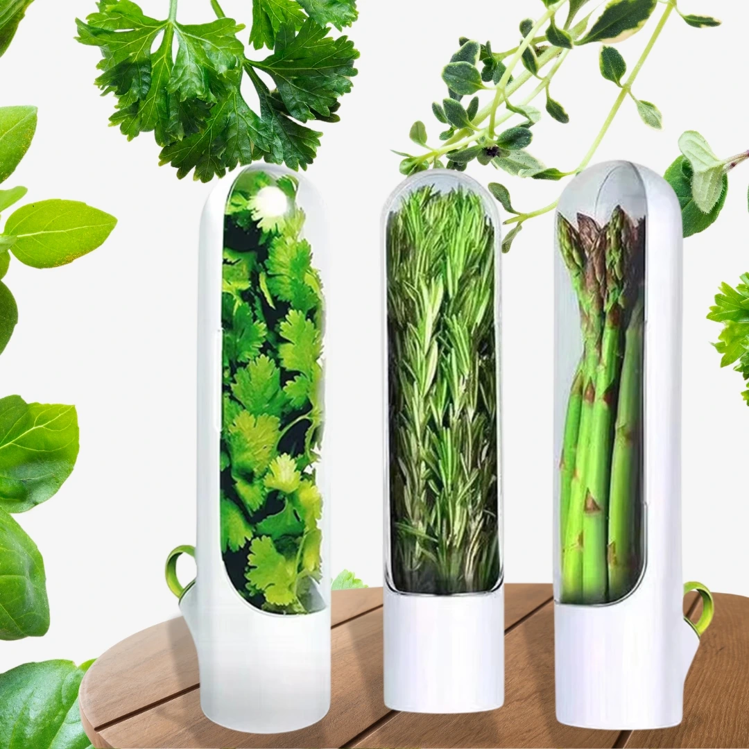 🥗 1/2/3PCS Fresh Herb Keeper 🌟 | 🍃 Preserve Cilantro, Mint, Parsley & More! |🚪 Fits Perfectly in Your Fridge Door.