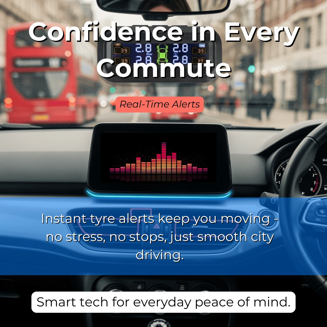 - ⏱️ Real-Time Monitoring: Keep tabs on pressure & temperature for all 4 tyres.