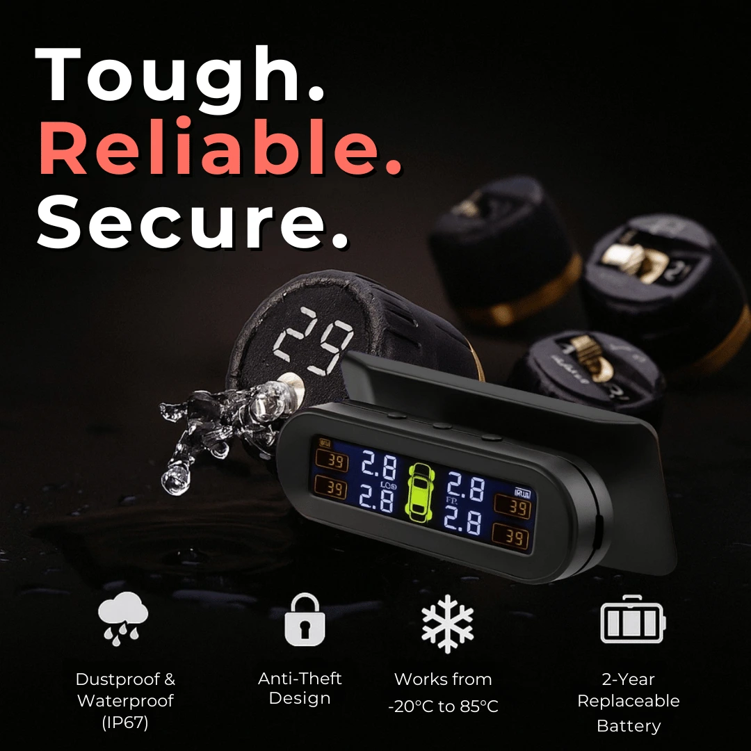 Been using this on long trips down the coast absolutely brilliant. Solar power works even on overcast days, and sensors hold up fine on bumpy roads. Only thing I’d say is that one sensor was a bit stiff to screw on, but otherwise perfect. Solid gadget for anyone who drives a lot.