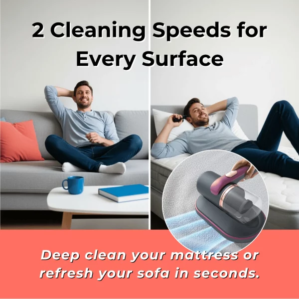 Ideal for daily household cleaning tasks. Use it on mattresses, sofas, cushions, carpets, or anywhere dust and mites accumulate.