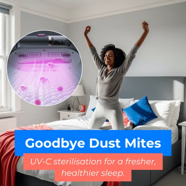 Honestly love this little gadget! I’ve got two kids and a dog, and it’s a lifesaver for keeping the beds and sofa dust-free. Lightweight, easy to use and the UV thing makes me feel like everything’s properly clean. 🩶